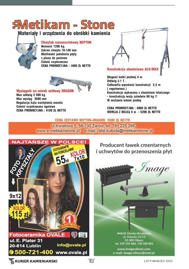 • Kurier Kamieniarski to dwumiesięcznik – najstarszy na rynku kamieniarskim, wydawany od 1997 r. Jest bezpłatnie wysyłany do ponad 4.000 osób i firm związanych z branżą kamieniarską.