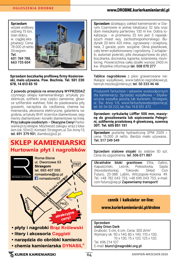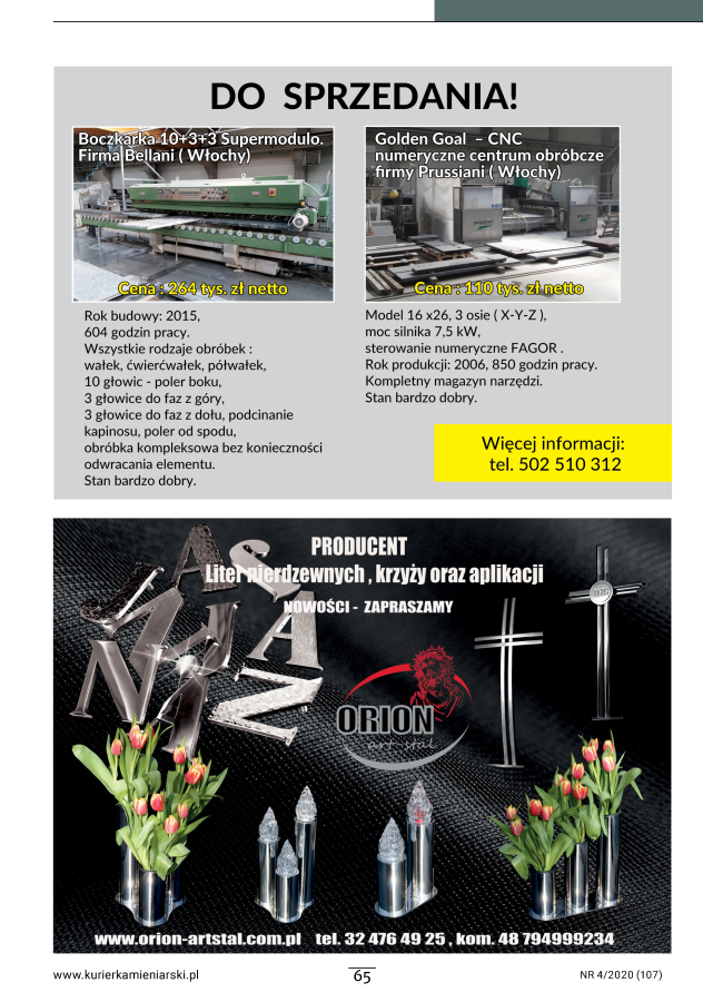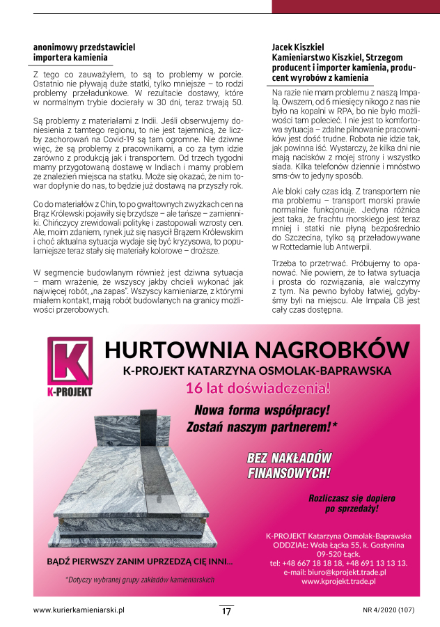 • Kurier Kamieniarski to dwumiesięcznik – najstarszy na rynku kamieniarskim, wydawany od 1997 r. Jest bezpłatnie wysyłany do ponad 4.000 osób i firm związanych z branżą kamieniarską.