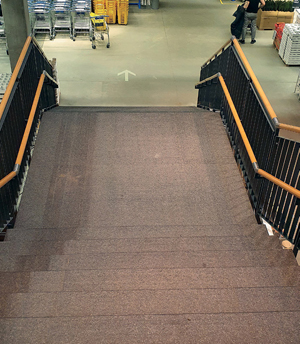 Zdj. Przykład złudzenia optycznego – najniższy stopień jest około 1 m szerszy niż najwyższy (IKEA, Wrocław)