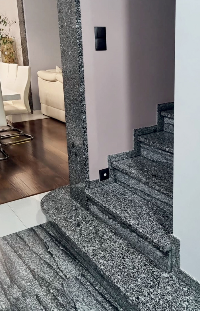 Kolorystyka kamienia powoduje, że bardzo dobrze komponuje się on z szarymi granitami. Oczywiście najlepiej widać to na materiałach polerowanych. W przypadku innej faktury uwidacznia się to, kiedy kamień jest mokry lub po zastosowaniu środków imitujących mokry kamień.