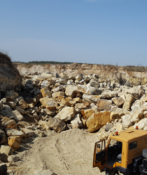 Wydobywany jest w bryłach o wielkości do kilkunastu ton wyłącznie przy użyciu koparek hydraulicznych. W zależności od potrzeb jest dzielony na slaby lub formaki. Z formaków powstają bloczki do murowania ścian, nadproża i inne obramowania otworów, elementy architektoniczne o dowolnie skomplikowanym profilu, elementy toczone, a także rzeźby wykonywane tradycyjnie lub cyfrowo. Slaby – najczęściej o wymiarze 130 x 250 cm – stanowią podstawę do produkcji dowolnych elementów płaskich o różnych grubościach.