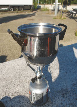 autostopowiczów. Mój sprzęt – kuchenka turystyczna i butla z gazem –