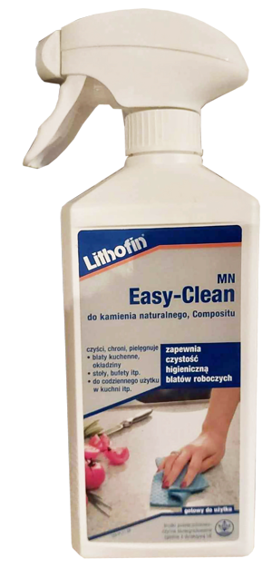 Lithofin MN Easy-Clean to coraz popularniejszy środek do czyszczenia kamienia. Preparat ma certyfikat dopuszczenia do kontaktu z żywnością, więc może być używany do czyszczenia każdej powierzchni kamiennej, również blatów kuchennych.