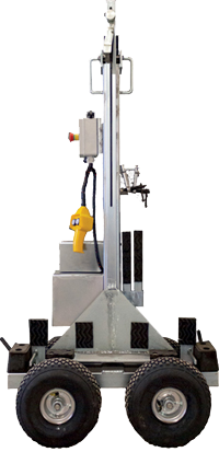 Podnośnik EDSTONE-800 to nowoczesna alternatywa dla tradycyjnego transportu płyt kamiennych. W bezpieczny i szybki sposób umożliwia podniesienie, przetransportowanie, załadunek materiału o dużej masie przy małym nakładzie sił operatorów. Za pomocą wyciągarki linowej – zasilanej akumulatorowo – oraz systemu rolkowego do podniesienia i przetransportowania płyty o wadze do 800 kg wystarczy dwóch pracowników, a niewielki rozstaw kół sprawia, że bardzo dobrze radzi sobie z wąskimi przejazdami i w każdym terenie. Koła są pompowane, więc opory toczenia są minimalne, a podjazd na krawężnik nie będzie problemem.