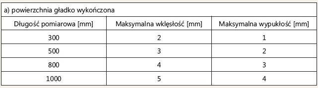 Tab. 1. Tolerancje wymiarów powierzchni płyt o regularnym kształcie
