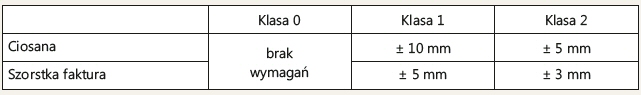 Tab. 8. Tolerancja nierówności powierzchni dla płyt łupanych i szorstkich
