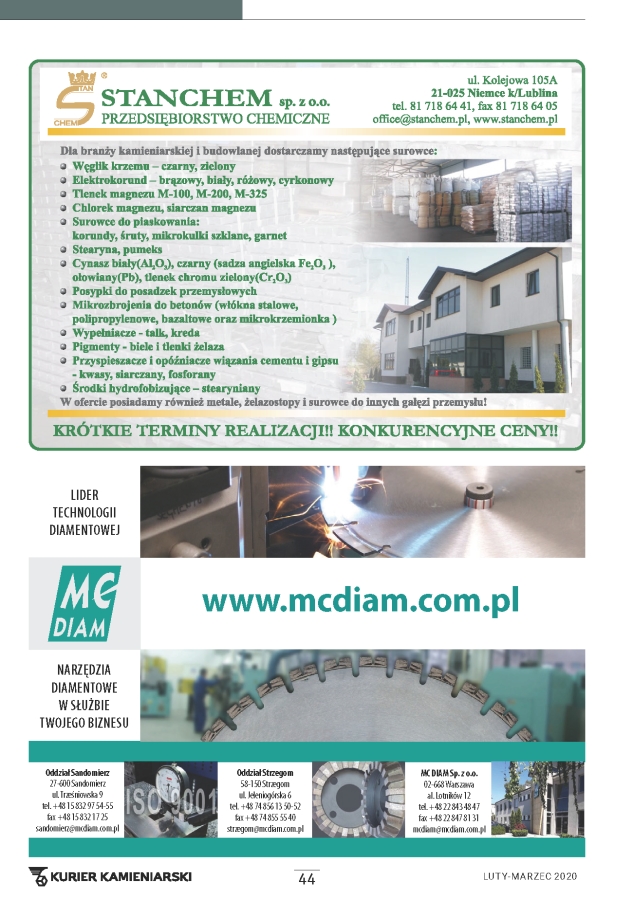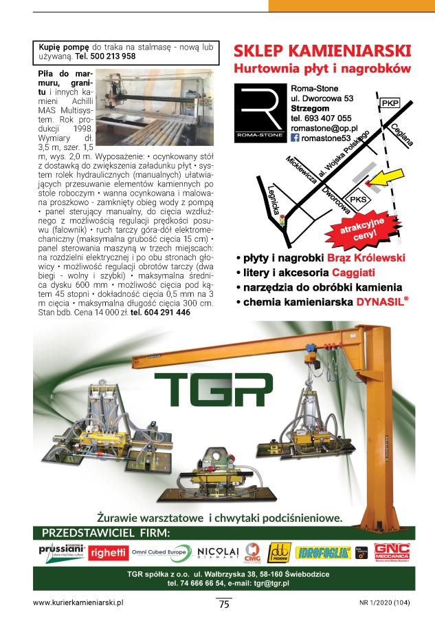 • Kurier Kamieniarski to dwumiesięcznik – najstarszy na rynku kamieniarskim, wydawany od 1997 r. Jest bezpłatnie wysyłany do ponad 4.000 osób i firm związanych z branżą kamieniarską.
