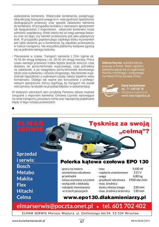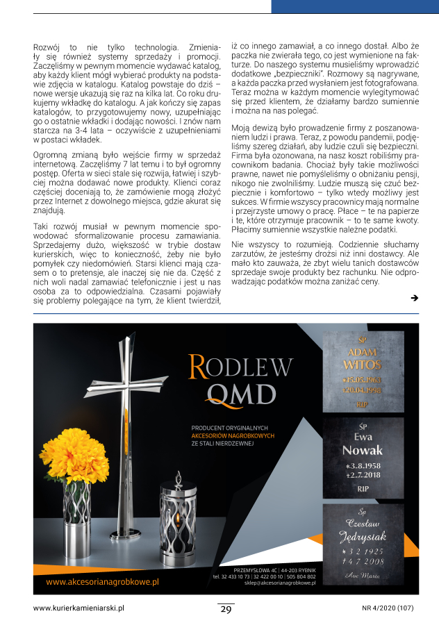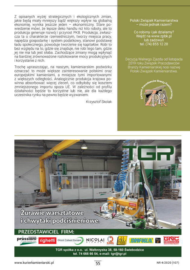 • Kurier Kamieniarski to dwumiesięcznik – najstarszy na rynku kamieniarskim, wydawany od 1997 r. Jest bezpłatnie wysyłany do ponad 4.000 osób i firm związanych z branżą kamieniarską.