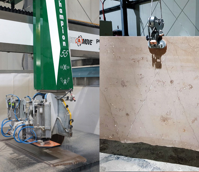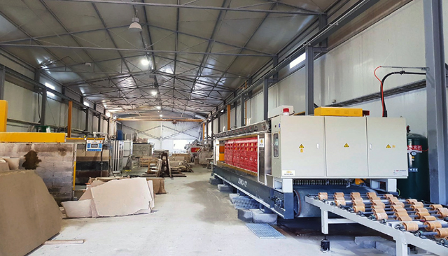 Główne elementy to traki linowe i linia polerska: polerka 12-głowicowa, sterowana komputerowo wraz z systemem stołów załadowczo-rozładowczych o szerokości roboczej 130 cm. Za elementy ciągu uznać też należy oprzyrządowanie hali: suwnica, szafy zasilające i wszystko to, czego na pierwszy rzut oka nie widać, a jest potrzebne przy takim przedsięwzięciu. Uzupełnieniem są urządzenia o odpowiedniej nośności na placu, bo przecież mówimy o rozładunku i manewrowaniu blokami o wadze około 20 ton. W ramach tej inwestycji uruchomione zostały też mniejsze maszyny, w tym piły i polerki, które nie biorą bezpośredniego udziału w produkcji slabów, ale doskonale uzupełniają nasze możliwości produkcyjne, zwłaszcza dla klienta końcowego.