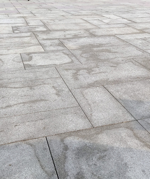 Mamy kolejny przykład nagłego ograniczenia zmysłu wzroku – remont Starego Rynku w Bydgoszczy. Ciekawy projekt, różne kolory granitów, wiele osób zaangażowanych w pracę. Problem znów pojawił się przy fugowaniu – na płytach pozostały ślady żywicy wokół łączeń.