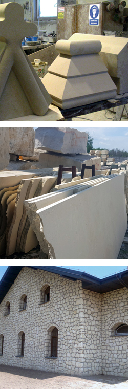 Wydobywany jest w bryłach o wielkości do kilkunastu ton wyłącznie przy użyciu koparek hydraulicznych. W zależności od potrzeb jest dzielony na slaby lub formaki. Z formaków powstają bloczki do murowania ścian, nadproża i inne obramowania otworów, elementy architektoniczne o dowolnie skomplikowanym profilu, elementy toczone, a także rzeźby wykonywane tradycyjnie lub cyfrowo. Slaby – najczęściej o wymiarze 130 x 250 cm – stanowią podstawę do produkcji dowolnych elementów płaskich o różnych grubościach.