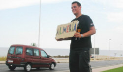 Wróciłem się na trasę uzbrojony w karton z napisem „MALAGA”, czyli nazwą miasta, które było jakieś 200 km za Almerią i niecałe 150 km od Gibraltaru. Wkrótce siedziałem w samochodzie Amayi i Jose, którzy wprawdzie nie jechali daleko, ale przynajmniej mogli mnie zostawić po drugiej stronie Almerii. Po kilku minutach jazdy Amaya powiedziała, że oni jadą do swojego mieszkania w niedalekiej nadmorskiej miejscowości Roquetas de Mar i że jeśli chcę, to mogę pojechać z nimi i spędzić u nich noc. Po upewnieniu się, że nie będę dla nich kłopotliwym gościem, z wielką ochotą przystałem na ich propozycję.