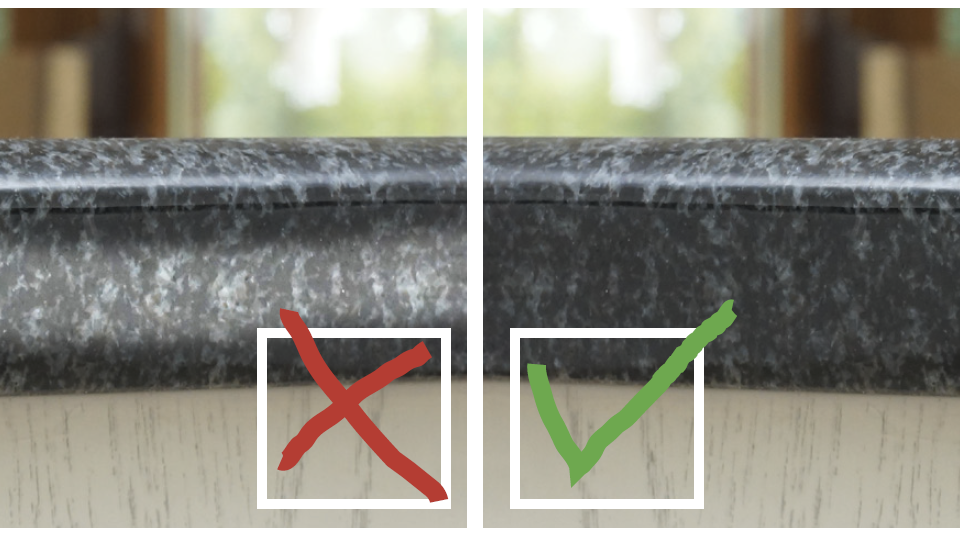 Przecinasz płytę, a tu się okazuje, że była barwiona lub żywicowana powierzchniowo. Efekt widział chyba każdy: bok blatu ma inny – zwykle jaśniejszy – kolor i żadne polerowanie nie pomoże. Zwłaszcza, jeśli materiał był chemicznie przycieminiony.