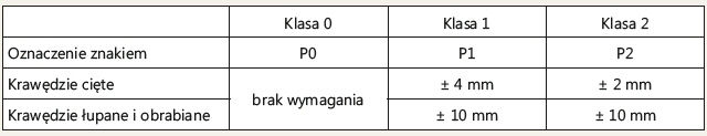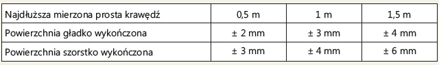 Tab. 1. Tolerancje wymiarów powierzchni płyt o regularnym kształcie