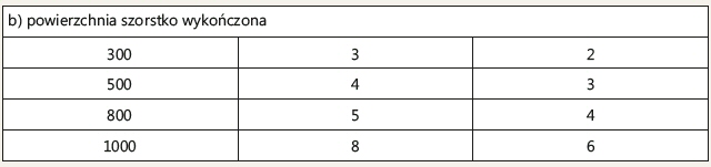 Tab. 8. Tolerancja nierówności powierzchni dla płyt łupanych i szorstkich