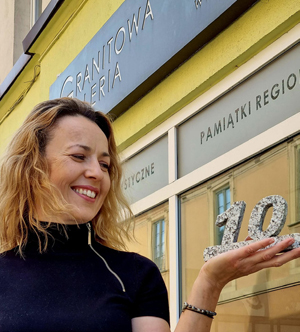 W zasadzie od początku, równolegle z produkcją nietypowych kamiennych elementów i nietuzinkowych wyrobów, w których znalazły one zastosowanie, moim marzeniem było utworzenie miejsca, w którym produkty te można będzie znaleźć. 10 lat temu zapadła decyzja o otwarciu w Strzegomiu niewielkiego sklepiku, w którym lokalny granit będzie zajmował najważniejsze miejsce. Od początku przyjęty został niezwykle ciepło, z zaciekawieniem, niedowierzaniem, zachwytem, zarówno przez mieszkańców Strzegomia, jak i przez kamieniarzy czy odwiedzających nasze miasto turystów. To motywowało i wciąż motywuje do dalszej pracy, jest niezwykle inspirujące i uzmysławia, że wciąż więcej jeszcze do odkrycia niż tego już dokonanego. Dlatego ciągle się uczę, testuję nowe rozwiązania, próbuję realizować kolejne pomysły. Wiąże się to z poznawaniem kreatywnych i twórczych ludzi, opracowywaniem nowych produktów, tworzeniem kolejnych projektów czy wydarzeń i to jest cudowne w tej pracy! Bo ludzie z pasją, dobrą energią przyciągają się i nakręcają do działania.